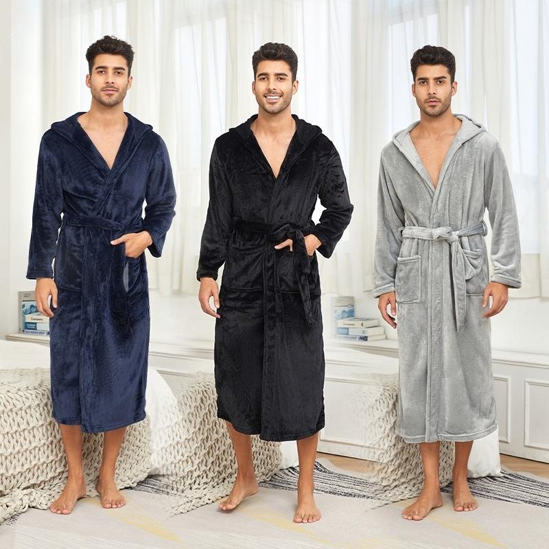 Hooded Robes for Men Full Length Spa Bathrobes Soft House Sleepwear Coat with Hood and Pockets Men's Winter Warm Plush Fleece Robe Hooded Fluffy Robes — buy online with free worldwide shipping!