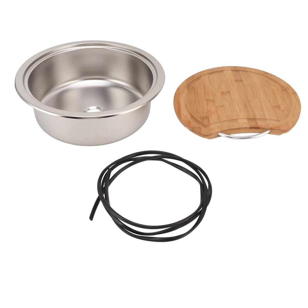 360x120mm 14.17x4.72in RV 304 Stainless Steel Sink Round Hand Wash Basin Sink with Bamboo Chopping Block for Boat — buy online with free worldwide shipping!