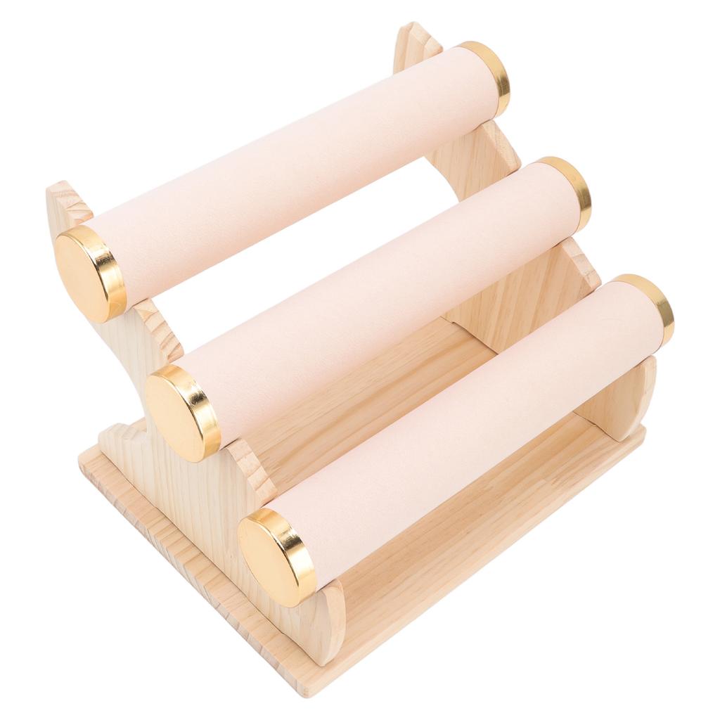 Bracelet Holder 3 Tier Detachable Jewelry Display Stand with Wooden Tray for Watch Home Shop Pink