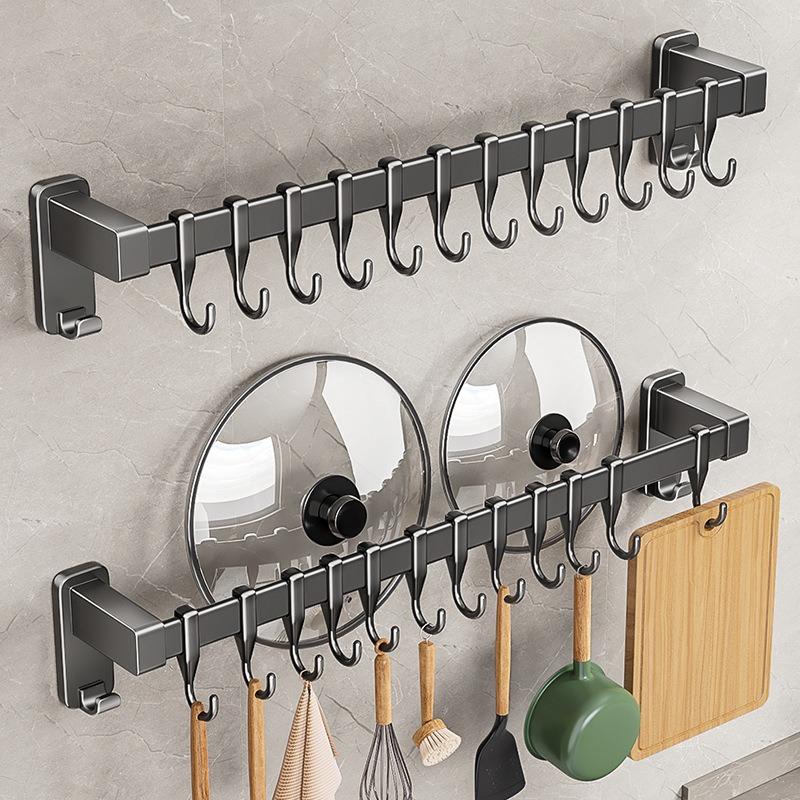 Kitchen Storage Rack Non-perforated shelves Wall Mounted with Movable hook Spoon Holder Organizer Kitchen Utensil Accessories — buy online with free worldwide shipping!