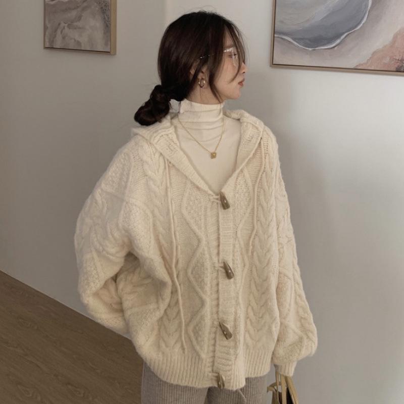 Women's Loose Cable Knit Hooded Sweater Coat - Thick Autumn/Winter 2024 Cardigan — buy online with free worldwide shipping!