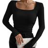 2023 European and American Slim Fit Ruched Short Sleeve Long Sleeve Square Neck Autumn Top — buy online with free worldwide shipping!