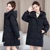 Winter New Women's Mid-Length Down Cotton Jacket with Hood Korean Style Simple Versatile Thickened Warm Cotton Coat