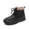 Johnature Retro Genuine Leather Plush Warm Women's Short Boots Soft Soled Round Toe Versatile Cotton Shoes