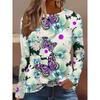 3D Flower Butterfly Pattern Printed Casual Long Sleeved Women's T-shirts - Soft Medium Stretch Polyester Fabric Spring and Autumn Relaxed Fit Clothing