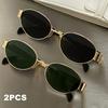 2 Pairs of Summer Fashionable Oval Metal Frame Glasses Unisex Suitable for Daily Wear and Trendy Pography