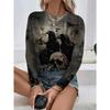 Round Neck 3D Skull Printed Top Casual Long Sleeved Women's T-shirts - Soft Medium Stretch Polyester Fabric Spring and Autumn Relaxed Fit Clothing — buy online with free worldwide shipping!