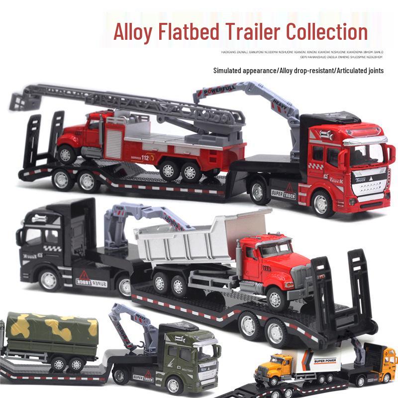 Children's Alloy Transport Toy: Pull-Back Fire Truck, Trailer, Tank & Excavator