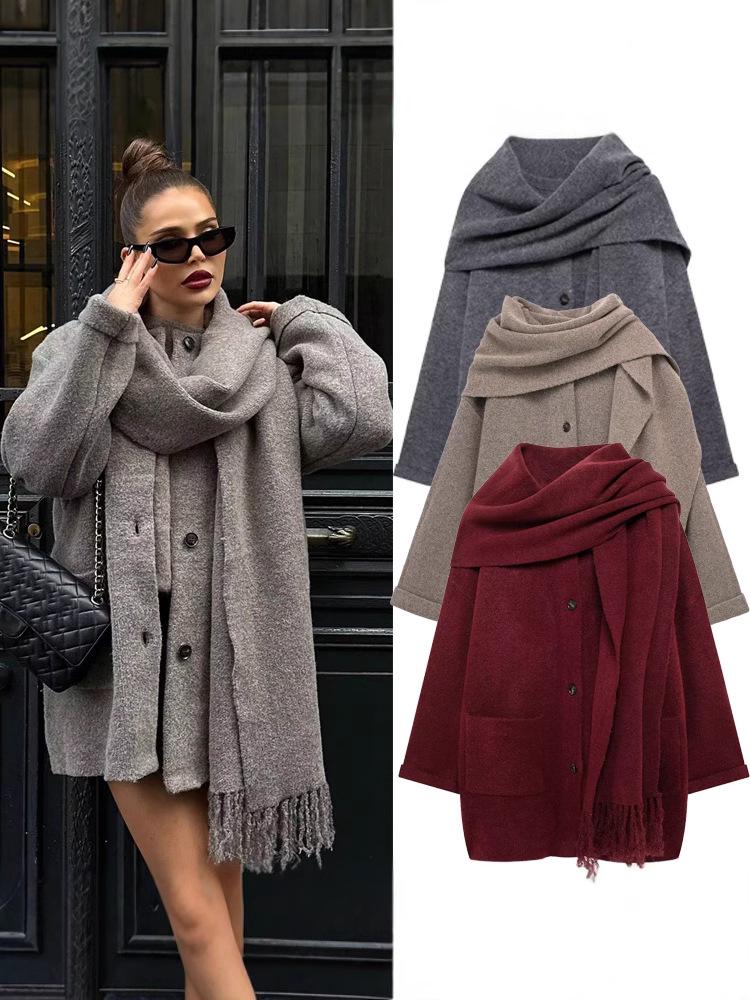 INS Spring Women's Elegant Knit Coat with Scarf — buy online with free worldwide shipping!