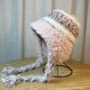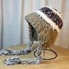 Ethnic Style Striped Splicing Knitted Woolen Hat Autumn and Winter Women's Thickened Warm and Cold Proof Ear Protection Hood Lei Feng Hat