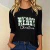 Women's Fashion Casual Three-quarter Sleeve Christmas Print Crewed Neck Top