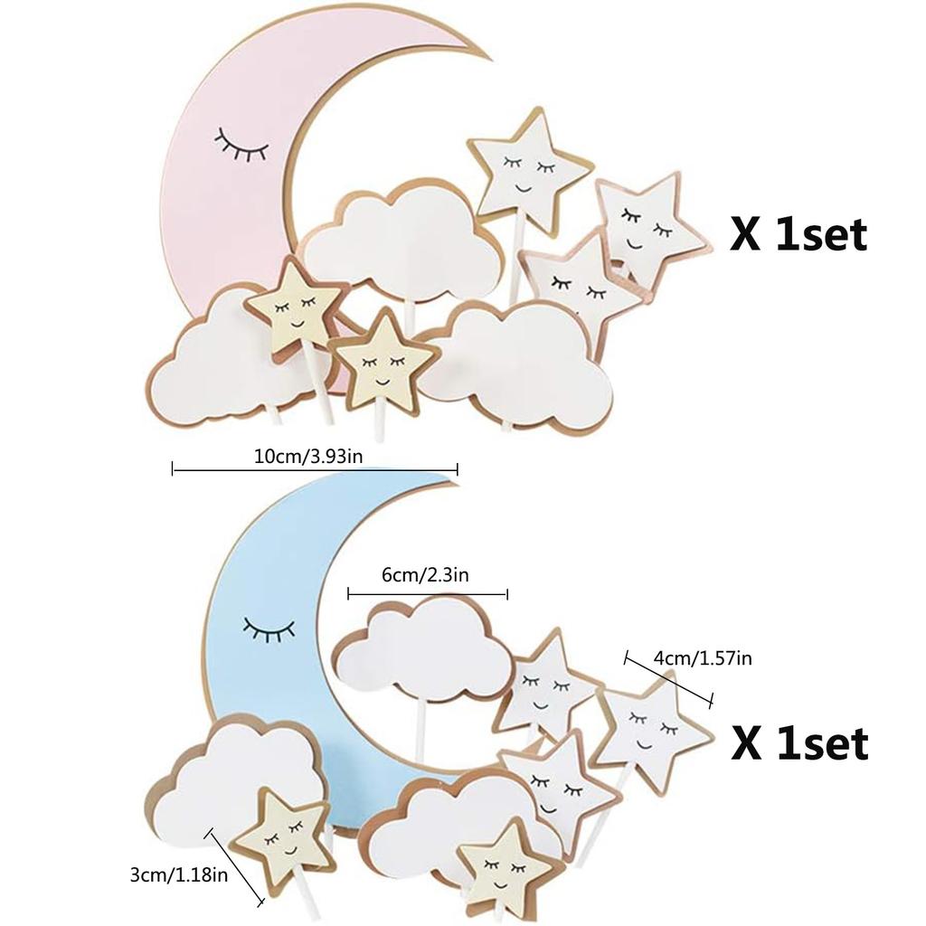 18Pcs Moon Star Cake Toppers Cloud Cupcake Picks Paper Baking Decoration for Baby Shower Gender Reveal Birthday Wedding Party — buy online with free worldwide shipping!