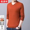Hengyuanxiang Men's V-Neck Solid Color Wool Blend Long Sleeve Sweater