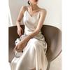 Demana Elegant Glossy Satin V-Neck Midi Slip Dress