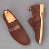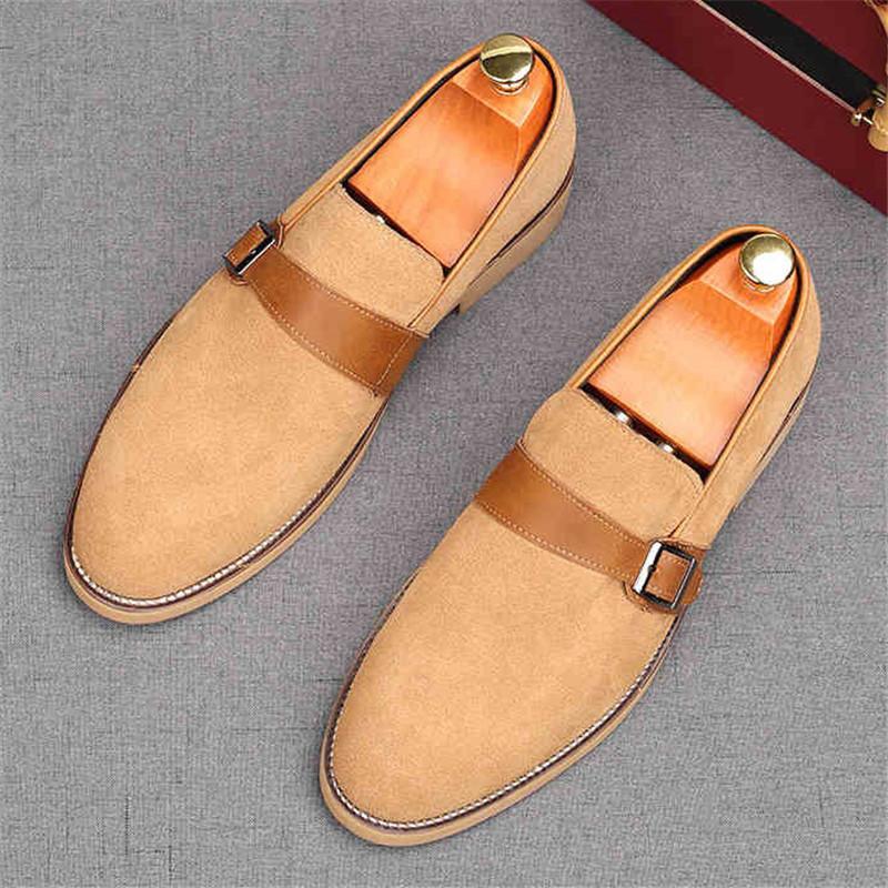 New Men's Pointed Genuine Leather Flats Monk Strap Shoes Brown Yellow Designer Male Homecoming Wedding Dress Footwear