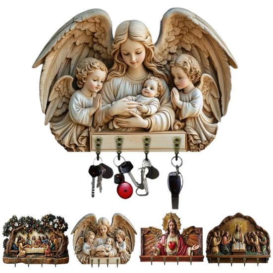 Jesus-Themed Decorative Design: Elevate your space with a Jesus-themed pattern that adds a touch of elegance and spirituality to your home decor. This wall mount key holder doubles as a charming wall decoration, blending functionality with aesthetic appeal seamlessly.