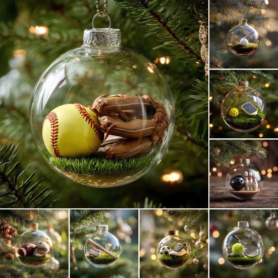 Funny 3D Sports Ball Christmas Tree Ornaments Micro Scene Sports Holiday Ornament Clear Ball