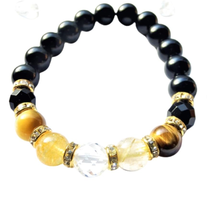Rutilated quartz, tiger eye, golden tiger eye, citrine, quartz crystal, onyx (10mm beads)