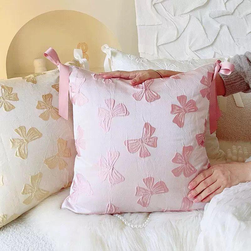 Korean Ins Ballet Style Girl Pink Ribbon Bow Pillow Cream Style Cushion Bedroom Sofa Cushion Cover