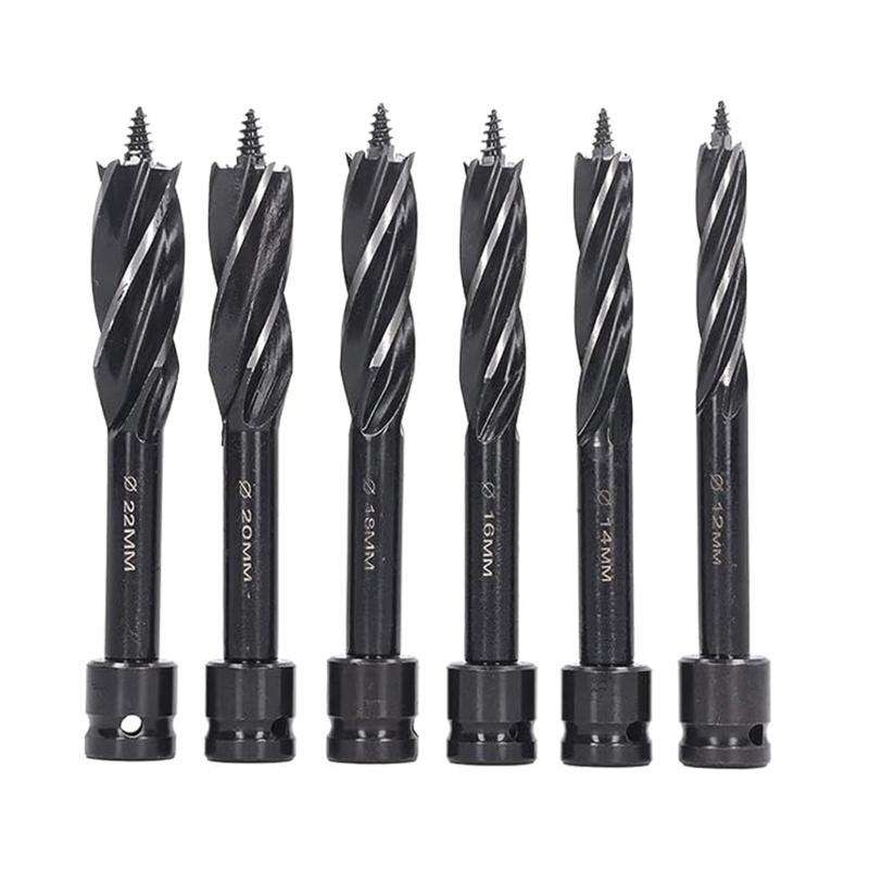 SPECIFICATIONS: Including 6piece wood screw drill bit with different drilling specifications to meet more requirements for opening woodworking holes. 4 CANDLES, 4 FLUIDS: This drill bit features 4-edge 4-flute design, which ensures a stable cut and more uniform chip removal, thus improving drilling efficiency;
