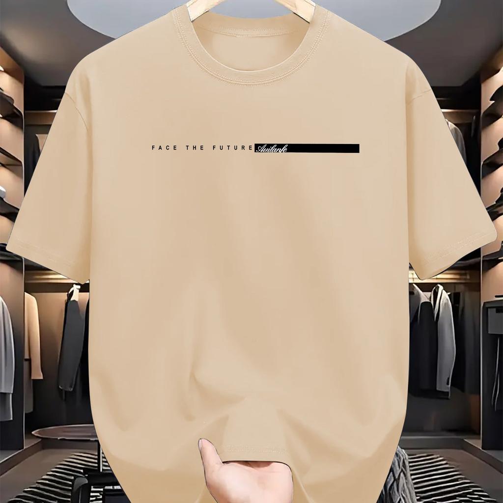New Summer Men's 100_ Cotton Casual Loose Fit Large Letter Print Round Neck Short Sleeved T-shirt Top High Street Unisex Style