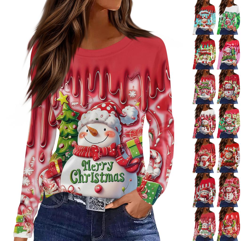 Women's Fashion Casual Slit Hem Round Neck Long Sleeve Loose Printed T-Shirt Ladies Top — buy online with free worldwide shipping!
