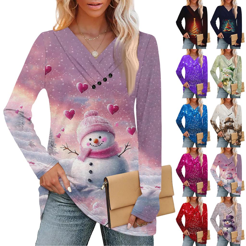 Women's Fashion Casual V-neck Pleated Christmas Long Sleeve Top — buy online with free worldwide shipping!