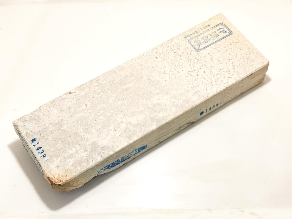 Rough-surfaced modified rhyolite and andesite from Iyo City, Ehime Prefecture, Japan, #1,000-5,000 grit; the harder the stone, the finer the grain. Strongest retention of tenacity relative to hardness. Neutral and rust-resistant, unlike other Iyo grinding stones. Grinding ability recovers well when raised with diamonds #400 or smaller. Recommended by Kyonagura. Rounded, continuous striations ensure long-lasting cutting at around 70% of the threshold, and with an artificial grinding stone grit ratio, it is difficult to achieve a dull mirror finish, making it easy to bring out the contrast of the forging joint, material, and carbon content.