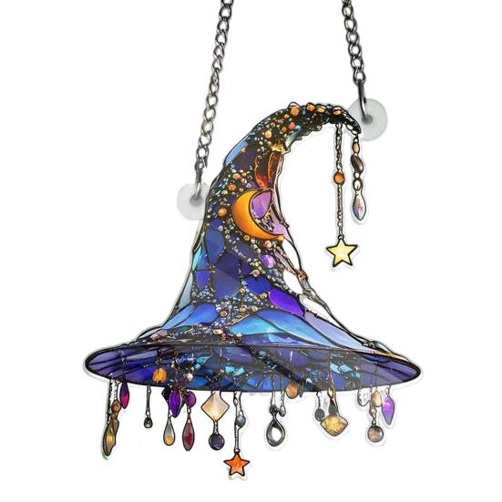 Enhance your Halloween decor with this elegant Witch Hat Sun Catcher. Crafted from high-quality acrylic materials, this weather-resistant decoration promises long-lasting brightness without aging or discoloration. The witch hat shape adds a festive touch, making it ideal for Halloween celebrations.