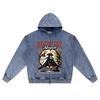 DTG Print Knitted Denim Zip-Up Hoodie Vampire Mosquito Brother Print Zipper Hoodies