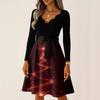 Women's Casual Fashion V Neck Long Sleeve Christmas Printed Party Vintage Long Dresses