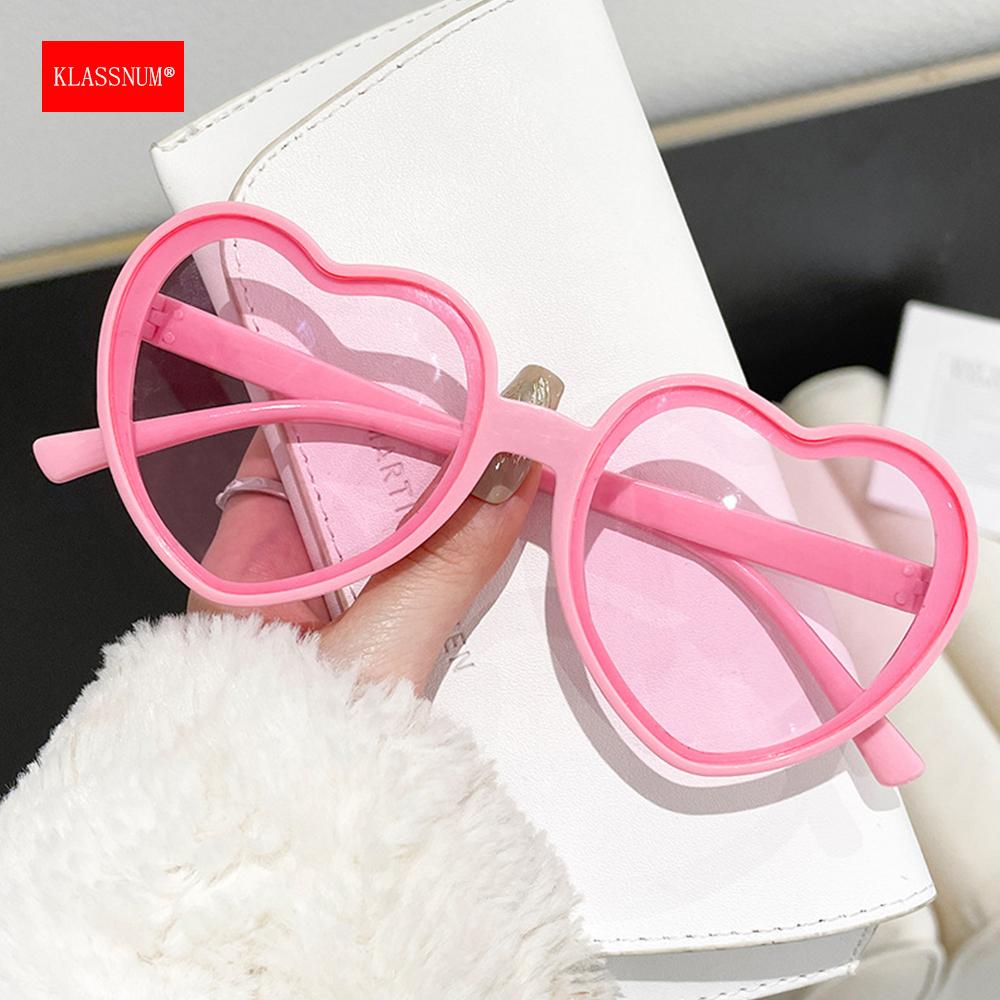 KLASSNUM Love Heart Shaped Sunglasses Wedding Party Decoration Women Big Frame Fashion Retro Pink Cat Eye Vintage Sun Glasses
