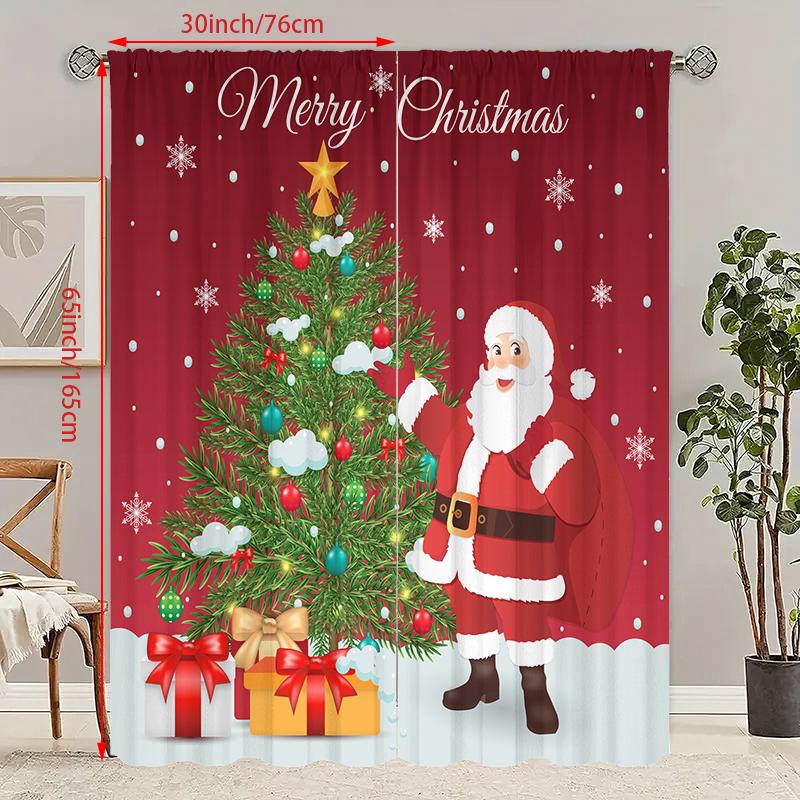 2 pieces of Santa Claus Christmas Tree printing curtain - polyester material suitable for bedroom living room study priva — buy online with free worldwide shipping!