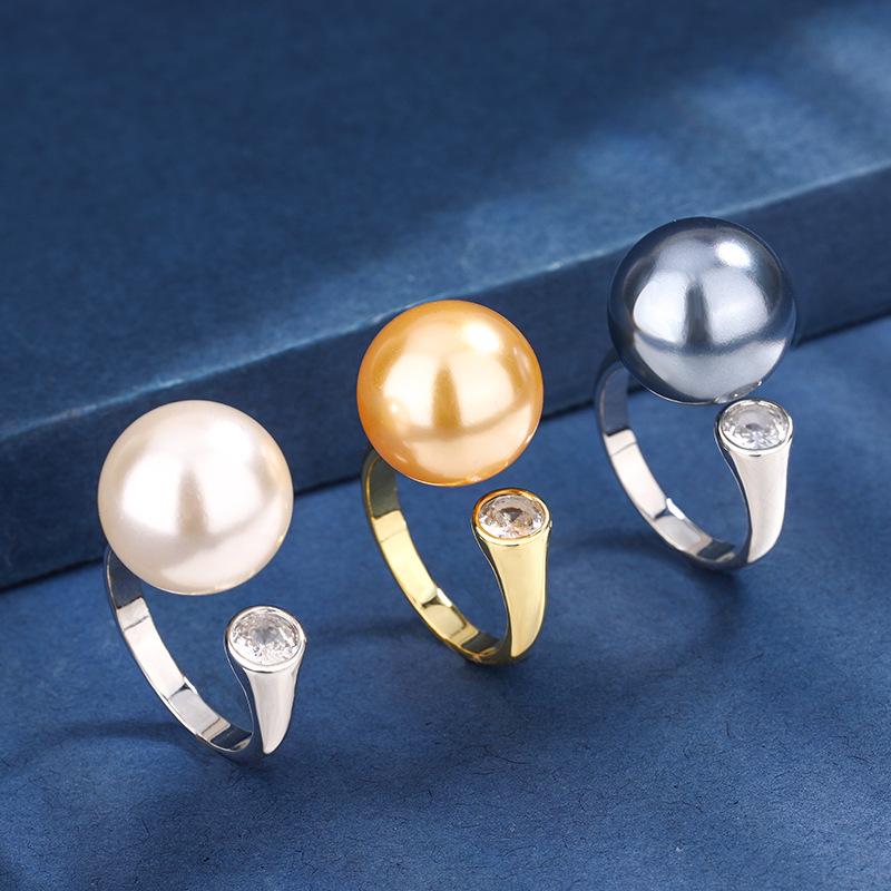 Jewelry Copper Gold Plated Simulation Pearl Simple Wind Ring Female 14Mm