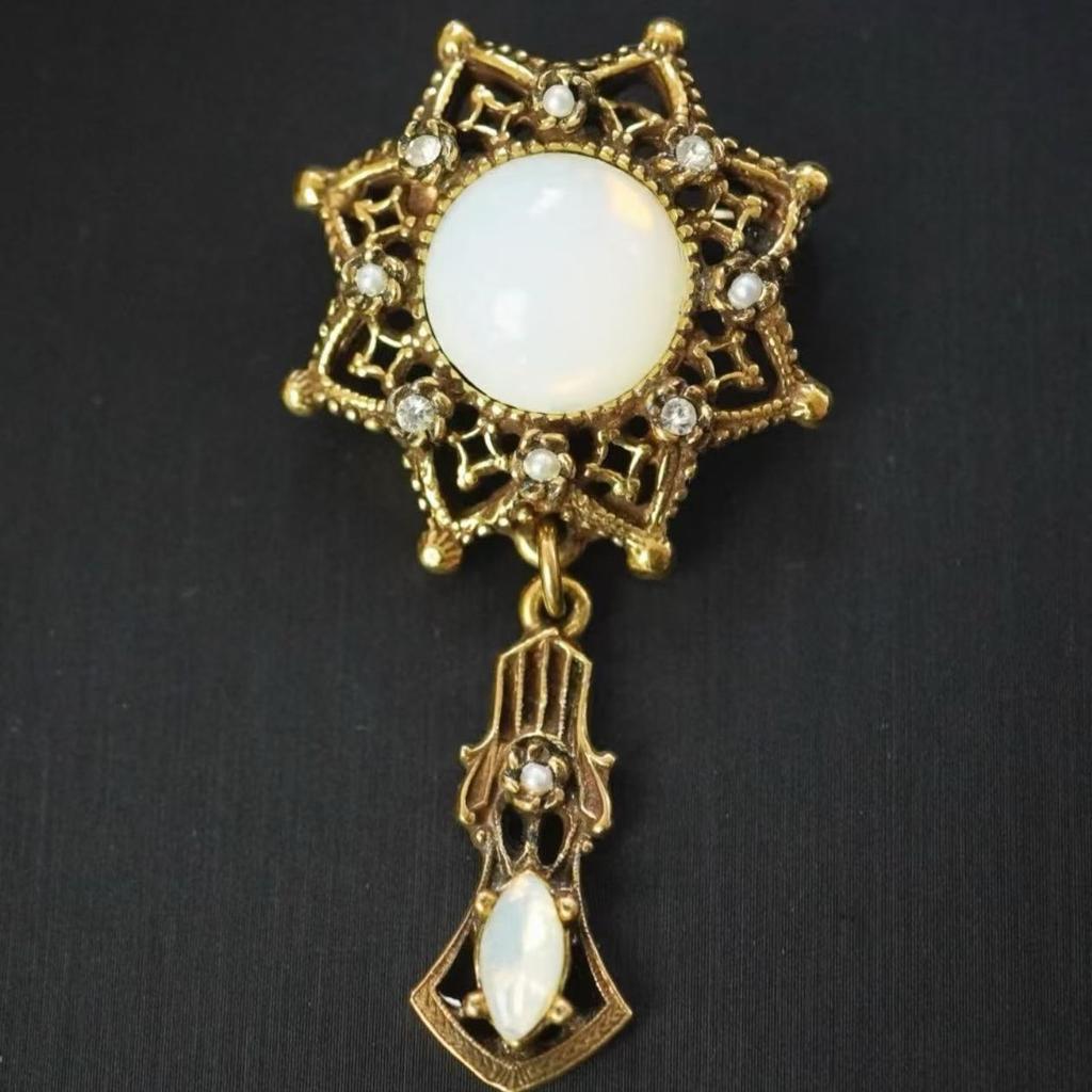 Medieval Jeanne Moonstone Pendant Brooch Simple Retro Premium Bust Opal Agate Stone — buy online with free worldwide shipping!