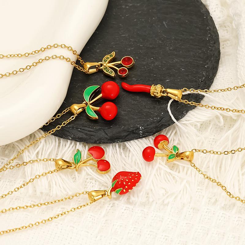 Simple Fruit Series Multi-Style Dripping Cherry High-End Clavicle Necklace Women'S Stainless Steel Jewelry — buy online with free worldwide shipping!