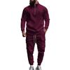 Men's Winter Casual Plus Velvet Warm Zipper Stand Collar Sweatshirt Men's Sports Pants Sweatshirt Set