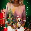 Women's Christmas Print Casual V-Neck Long Sleeve Top