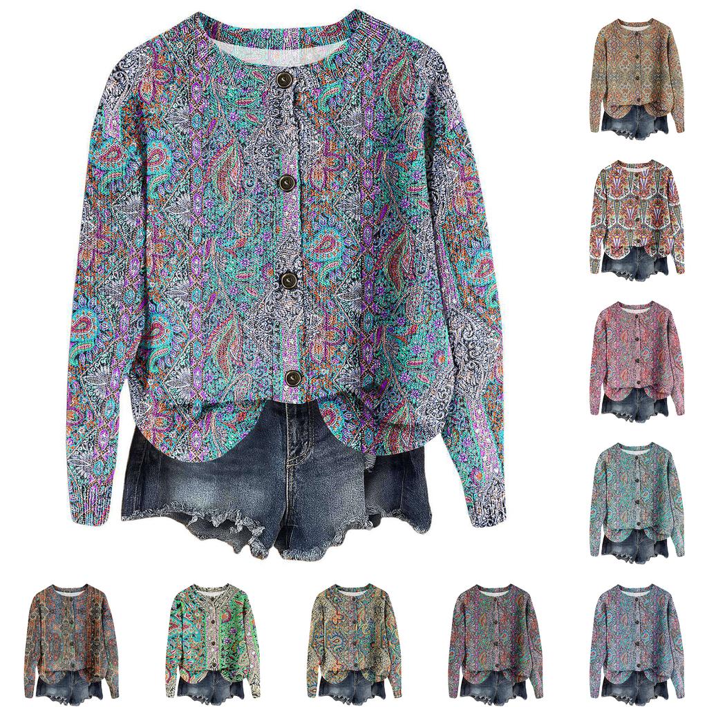 Women's Vintage Knit Button Vintage Print Cardigan Jacket — buy online with free worldwide shipping!