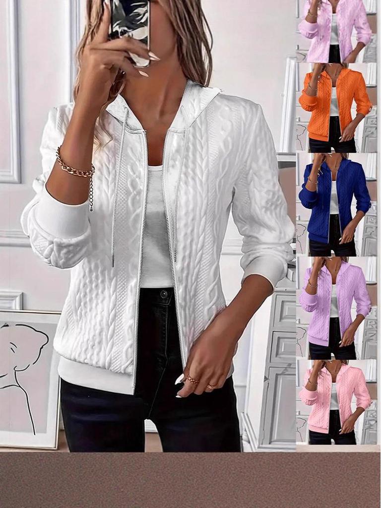 2025 Women's Solid Color Long Sleeve Knitted Hooded Zip-Up Jacket — buy online with free worldwide shipping!