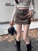 Black PU Midi Skirt: High Waist Textured A-line Bodycon Leather Skirt, Hot Girl Super Short, 2025 Spring Collection.