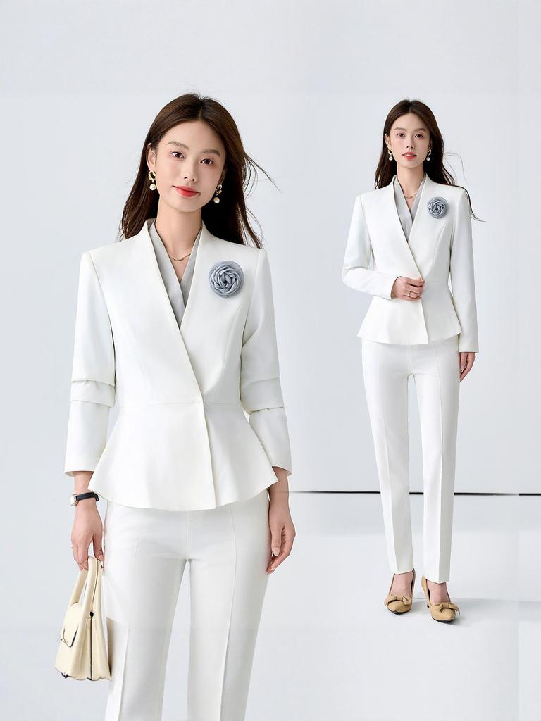 Elevate your professional wardrobe with this elegant women's suit set, designed for both spring and autumn. Crafted from high-quality viscose material, the blazer offers a sleek and comfortable fit, perfect for salon receptions and office settings. The refined white color enhances its sophisticated appeal, making it a versatile addition to your workwear collection. Suitable for both formal events and everyday professional wear, this suit set combines style and practicality, ensuring you look polished and confident wherever you go.