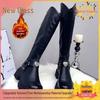 European Station Fleece-Lined Chunky Heel Cotton Knight Boots for Women – Autumn/Winter Korean British Style Slimming High Boots