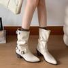 Women's 2025 Autumn/Winter Retro Korean-Style Pointed Toe Martin Boots - Versatile White Soft Leather High Heel Slouch Boots