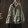 Johnature Women Vintage Hooded Shirts Striped Long Sleeve Patchwork Pockets Autumn Casual Female Blouses