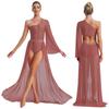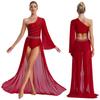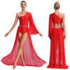 Women's One Shoulder Lyrical Dance Dress Sheer Mesh Flared Sleeve with Shiny Rhinestones Flowy Split — buy online with free worldwide shipping!