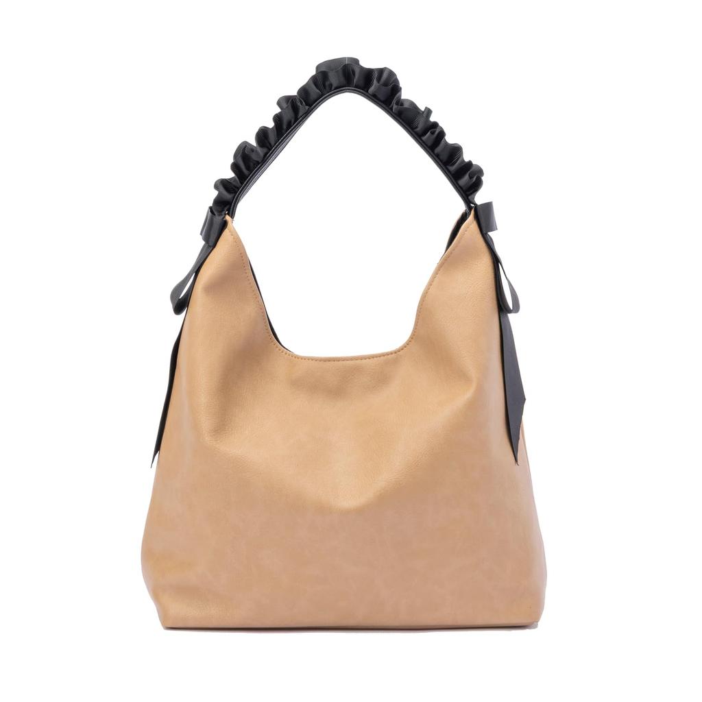 Kagonomori Women's Lightweight Faux Leather Shoulder Bag with Ruffles, Perfect for Adults, All Seasons, Model 505-23 (Beige) — buy online with free worldwide shipping!