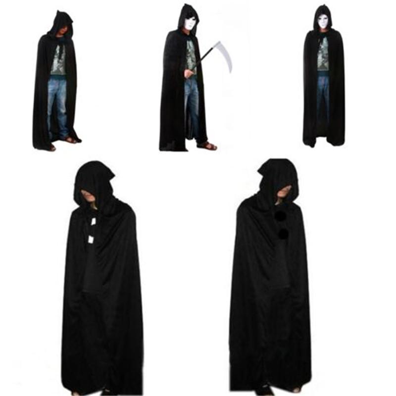 1/2/3pcs Black Halloween Party Cloak Cosplay Dress Up Costume Reaper Big Cloak Devil Hat Long Cloaks Scary Witch Devil Role Play — buy online with free worldwide shipping!