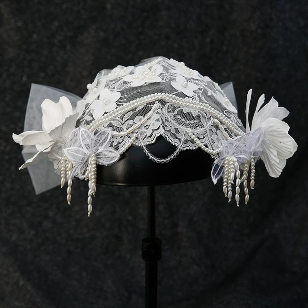 Pearls Beads Bride Headdress White Wedding Headwear Elegant Bridal Hat Hair Jewelry