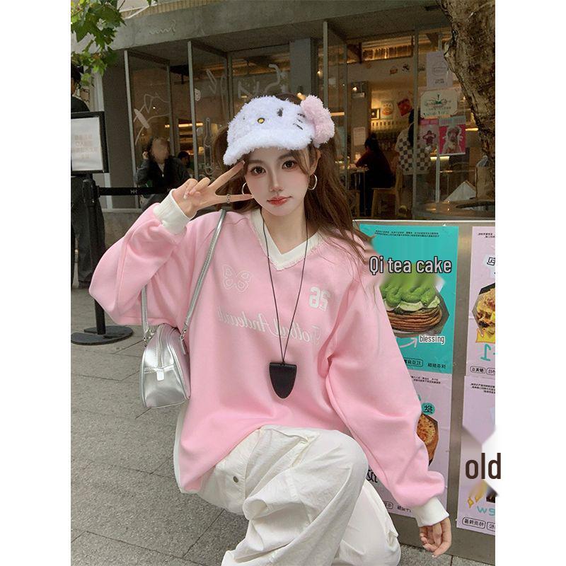 Women's Cotton Lace Trim Color Block V-Neck Sweatshirt – American College Style — buy online with free worldwide shipping!